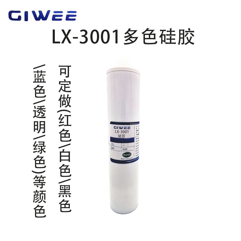 积微LX-3001颜色定彩色硅胶,可以根据客户需要定制红色蓝色黄色绿色黑色等各种特殊颜色的硅胶胶水应用场合。